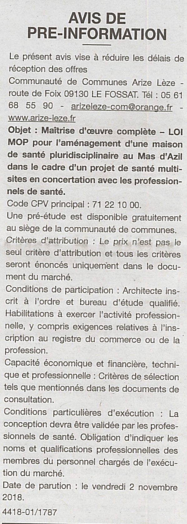 vousetesici Accueil La CommunautéLes Marchés PublicsArchives des Marchés Maitrise d’oeuvre complète Aménagement Maison de santé