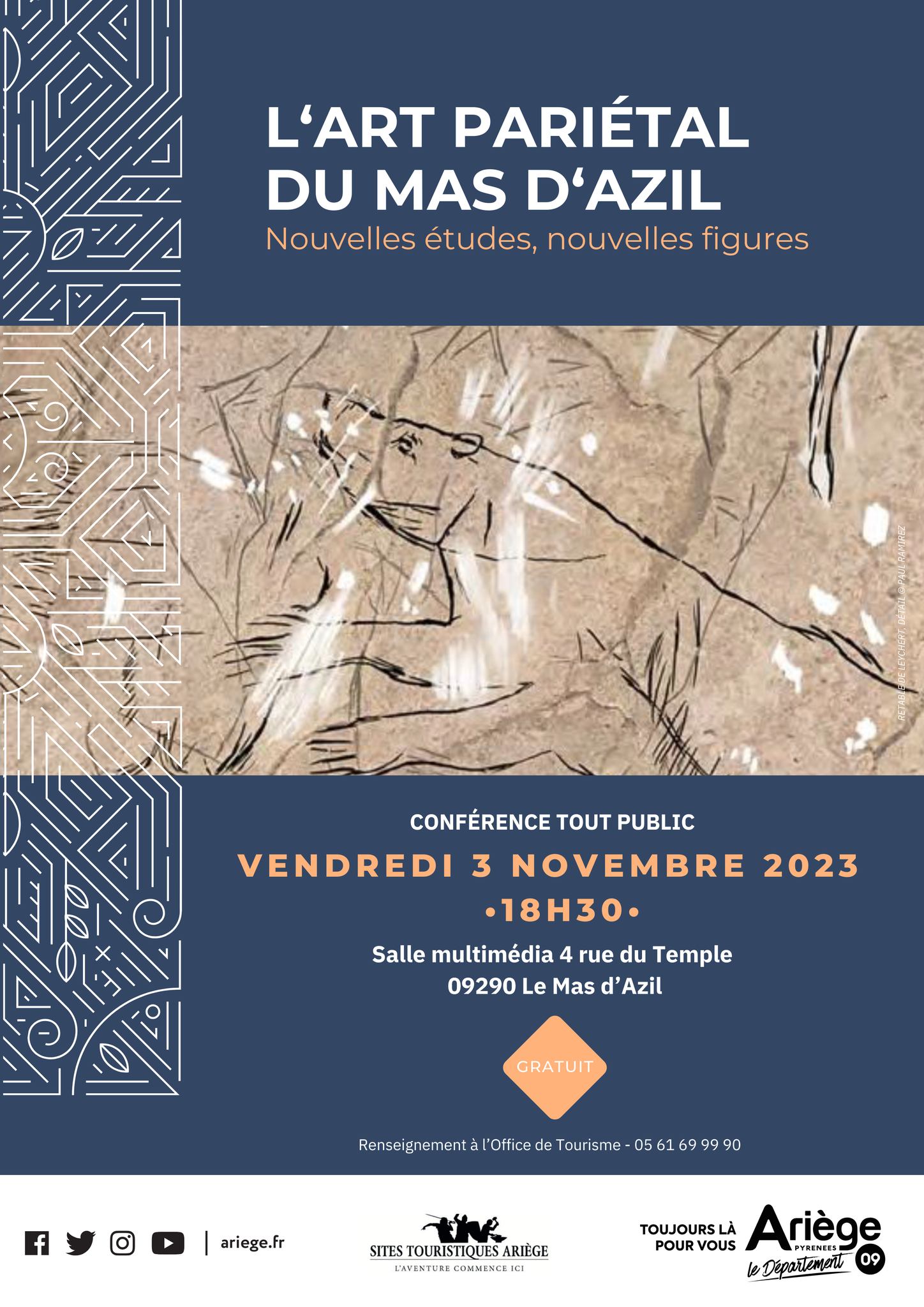 Vendredi 3 novembre à 18h30 à la salle multimédia du Mas-d’Azil, l’équipe de Carole Fritz dévoilera au public les nouvelles figures révélées par les nouvelles études sur l’art pariétal du Mas-d’Azil !